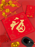 中国科大科学家礼盒内含:春联两幅、福字三幅,發字一幅,窗花四幅,红包及祝福卡片。