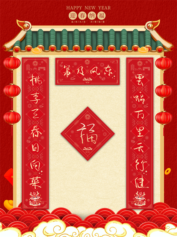 尺寸:春联:210*1180mm;横批:500*210mm;福字:300*300mm;窗花:270*270mm;红包:143*85mm;贺卡:170x170mm,折后尺寸85x170mm。
