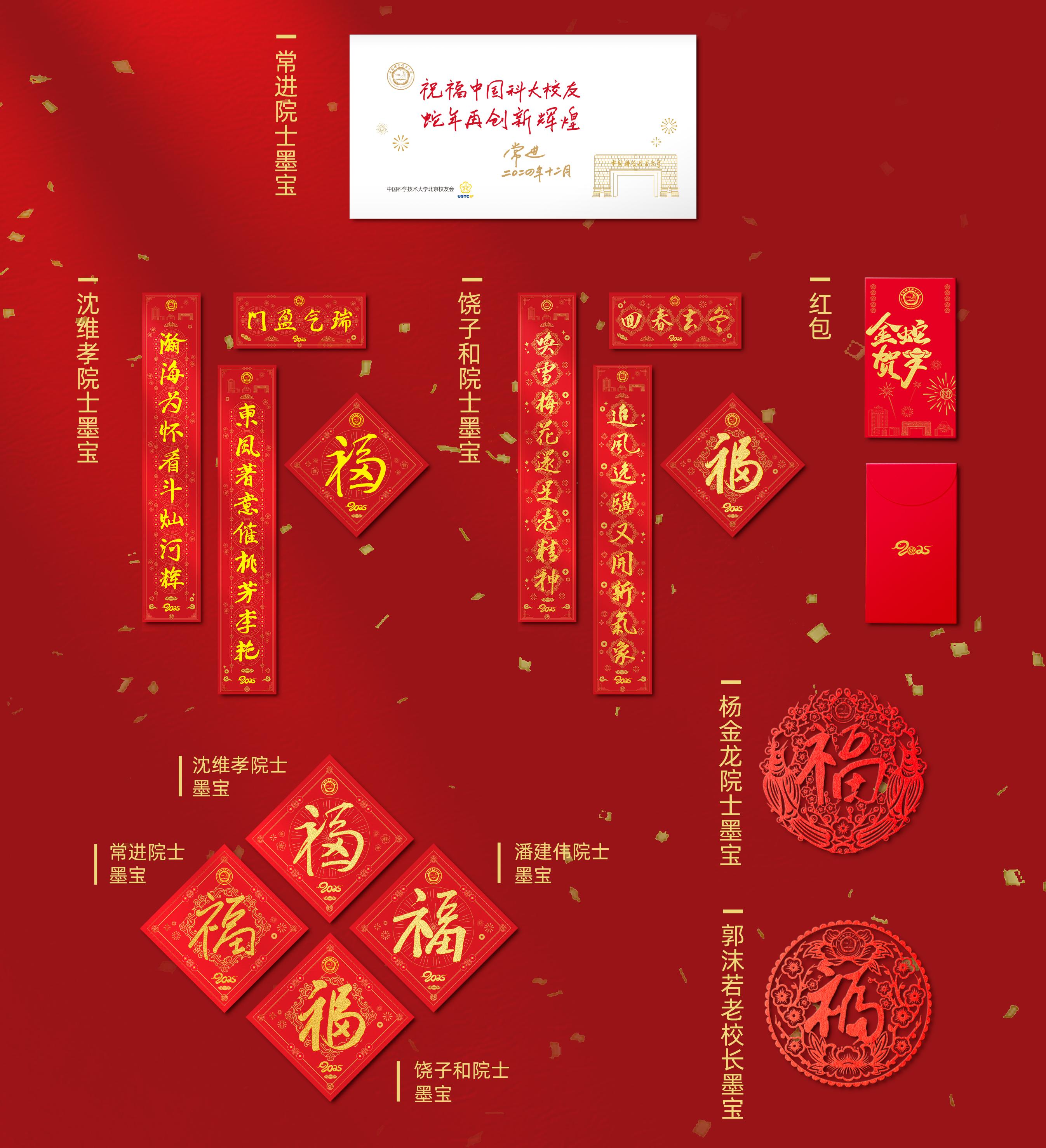 北京校友会连续第五年推出中国科学技术大学院士春联礼盒,现发布七位中国科学院院士挥毫的2026春联设计稿,欢迎登记领取!此为校友登记通道,科大在读生登记院士墨宝春联